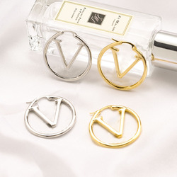 ต่างหูห่วงตัวหนังสือขนาดใหญ่ทำจากสแตนเลสสำหรับผู้หญิงเครื่องประดับแบรนด์หรู